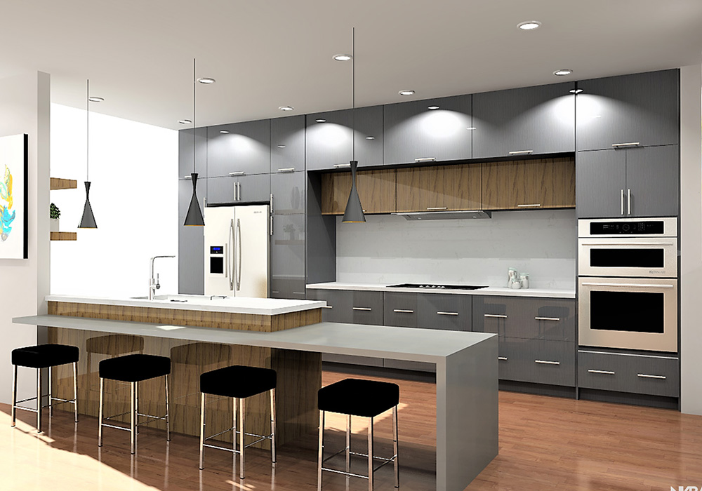Кухни из глянцевых панелей в ярких цветовых решениях