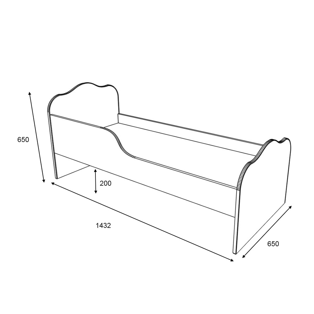 Кровать одноярусная с бортиком (размер 1432x636x605мм)